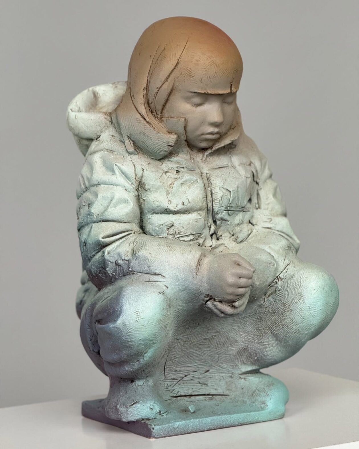 Eudald De Juana Gorriz crafts compelling ceramic sculptures that masterfully capture the nuances of human expression. His works present figures in moments of profound introspection, each posture and subtle detail of their form conveying a wealth of deep feelings. The artist’s skillful use of ceramic allows for the creation of textures and patinas that enhance the emotive quality of each piece, drawing those who encounter them into a space of contemplation.