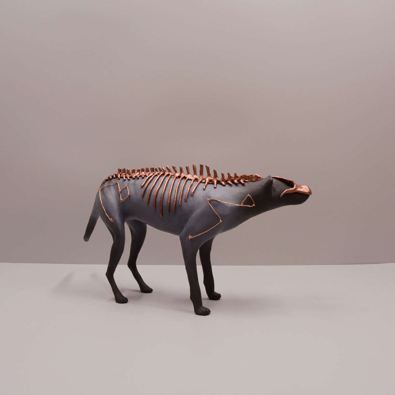 Virginie Gribouilli’s sculptures exist at the intersection of mythology and nature, where creatures from ancient lore seem to awaken in new, spectral forms. Her artistic approach merges skeletal anatomy with otherworldly embellishments, creating figures that appear both powerful and fragile, as if they belong to an extinct species from an alternate reality. Each piece is rich with symbolic elements, evoking thoughts of forgotten legends, untold histories, and the deep, primal connection between living beings and the unknown forces that shape existence. The presence of bones, horns, and intricate detailing lends an eerie elegance to her work, transforming ordinary animal forms into entities that seem to have transcended the limitations of time. These sculptures are not simply representations of life and decay; they embody transformation, evolution, and the continuous cycle of destruction and rebirth.