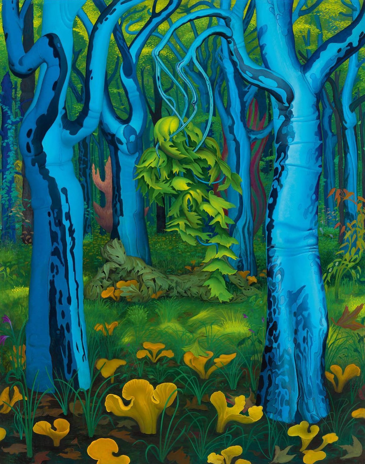 The pristine, high-gloss surfaces and accentuated colors of Essenhigh’s work give her art an almost sculptural three-dimensionality, making the delineation of forms truly stand out. Her forests and botanical creations aren’t just seen; they’re experienced, pulling one into a realm where the familiar is beautifully re-imagined and the fantastical feels tangible. It’s a celebration of nature’s boundless possibilities, rendered with an unparalleled vibrancy that captures the imagination and lingers long after.