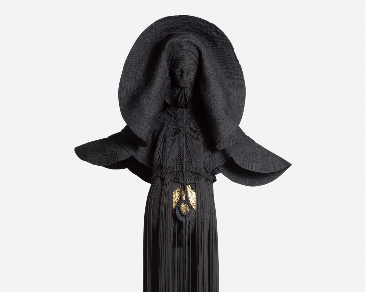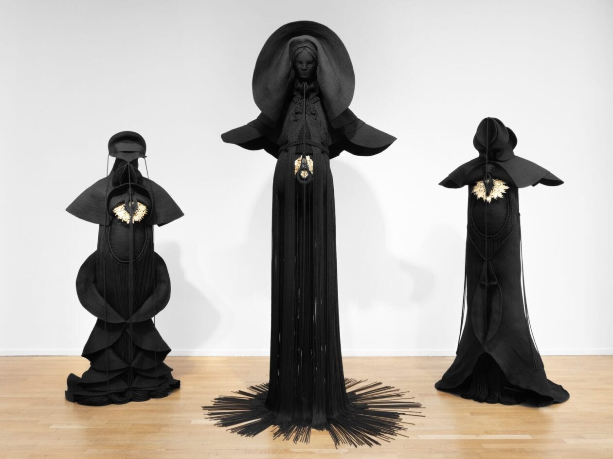 Jeanne Vicerial’s latest series, ‘Nymphose’, delves into the profound interplay of time and transformation through her distinctive sculptural forms. Utilizing black cord, thread, and an emergent inclusion of fine metals, Vicerial crafts figures that evoke the enduring essence of protective garments and armor. These works, building upon her established ‘Armors’ collection, consistently explore the depths of presence, consciousness, and the dynamic nature of change, offering a silent yet potent rumination on existence itself.