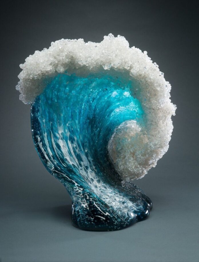 Marsha’s work is influenced and guided by the beauty and complexity of the marine environment, with an emphasis on textures and colors. Paul, on the other hand, has a passion for minimalism and the free creation of solid sculptures, emphasizing clarity and transparency, with softer colors. Among the collaborative works that most attract attention is the series of sculptures and vases inspired by the waves of the sea in all their splendor.