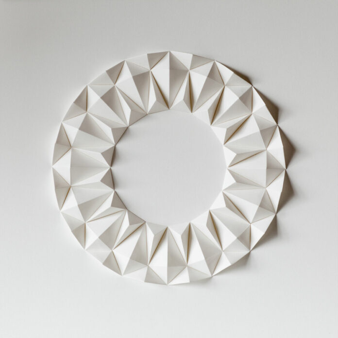 Anna Kruhelska, a visual artist and architect from Lodz, Poland, has captivated the art world with her origami-inspired geometric paper sculptures. Her work is a testament to the beauty of minimalism and the intricate interplay of light and shadow. Each piece is a meticulously crafted three-dimensional wall relief that comes alive through the viewer’s movement, creating a dynamic experience that shifts with perspective.