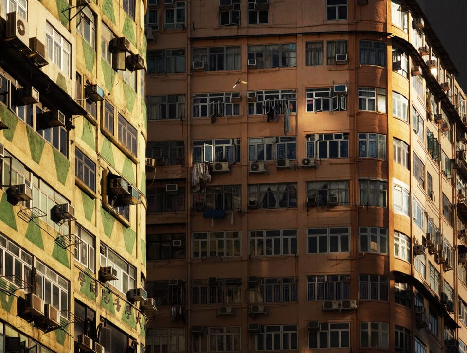 Living in Hong Kong for nearly ten years, Jacquet-Lagrèze developed a keen eye for the unique verticality of the city. He finds particular inspiration in areas like Kowloon, where the architecture bears the marks of its inhabitants, from lines of laundry fluttering in the breeze to the subtle wear and tear on building facades. His patience allows him to capture fleeting moments, such as workers scaling bamboo scaffolding or suspended from immense heights, integral parts of this elevated urban tapestry.