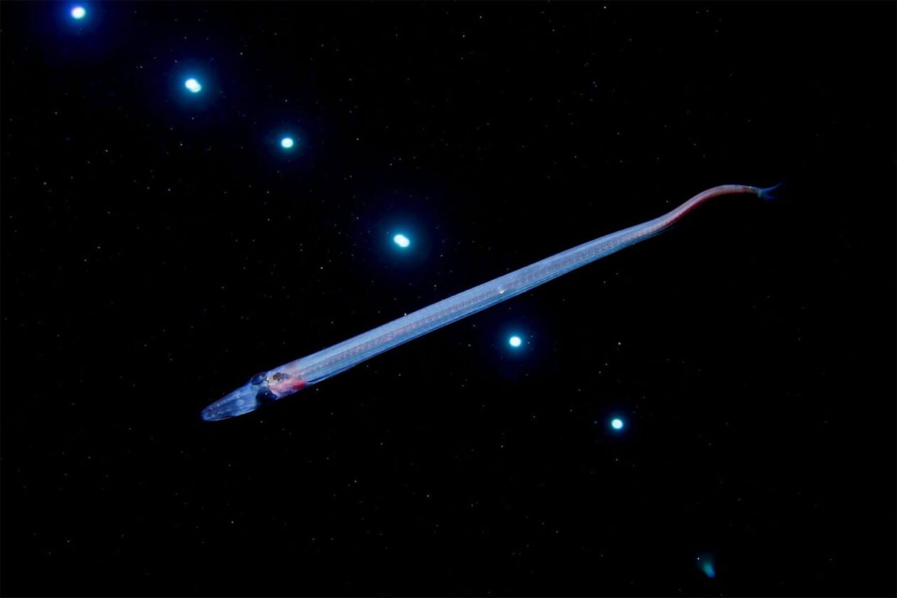 Minemizu’s Phenomenons series transforms marine biology into visual poetry. Using custom-built lighting rigs and sophisticated macro photography, he isolates individual plankton against an inky black background, creating images that seem to defy nature. Electric blues, glowing reds, and glass-like translucence give each photo an abstract, otherworldly quality. Despite their fantastical appearance, the subjects are entirely real — unmanipulated portraits taken in natural underwater environments. Each shot is the result of patience, precision, and an intimate understanding of the creatures’ lifecycles.