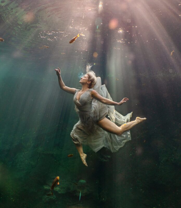 Lexi Laine’s underwater photography captures the ethereal beauty of a world beneath the waves, where gravity loosens its grip and humans can experience a semblance of flight. Her work, which often features women swimming in crystal clear waters, is reminiscent of delicate Baroque paintings, transporting us to a magical and otherworldly atmosphere.