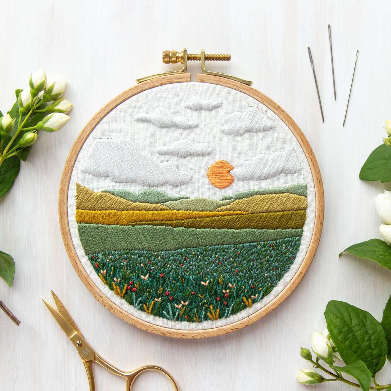 Operating from her cozy home, Holton balances the demands of motherhood with her passion for embroidery. She dedicates herself to her craft every day, channeling her insatiable creativity into each piece she creates. Her work, which includes both vibrant floral motifs and serene landscape depictions, reflects her love for all things handmade. Whether exploring organic shapes or structured geometric forms, Holton’s art conveys the beauty of the natural world through texture and thread, transforming simple materials into intricate works of art.