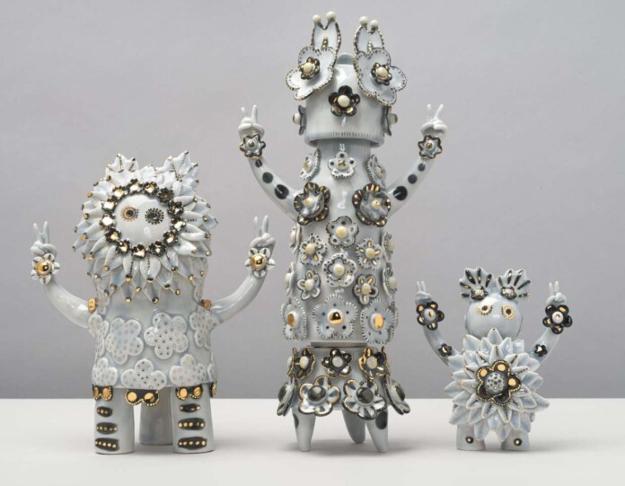 Vipoo’s porcelain sculptures beautifully marry elegance with playfulness, radiating a profound sense of optimism and unity. His work emphasizes the importance of community and accessibility, capturing an unwavering spirit of positivity. The delightful creations feature charming monsters and amusing creatures, intricately adorned with golden details and floral patterns. Each piece exemplifies a perfect balance between meticulous craftsmanship and whimsical design, celebrating joy and collective togetherness.