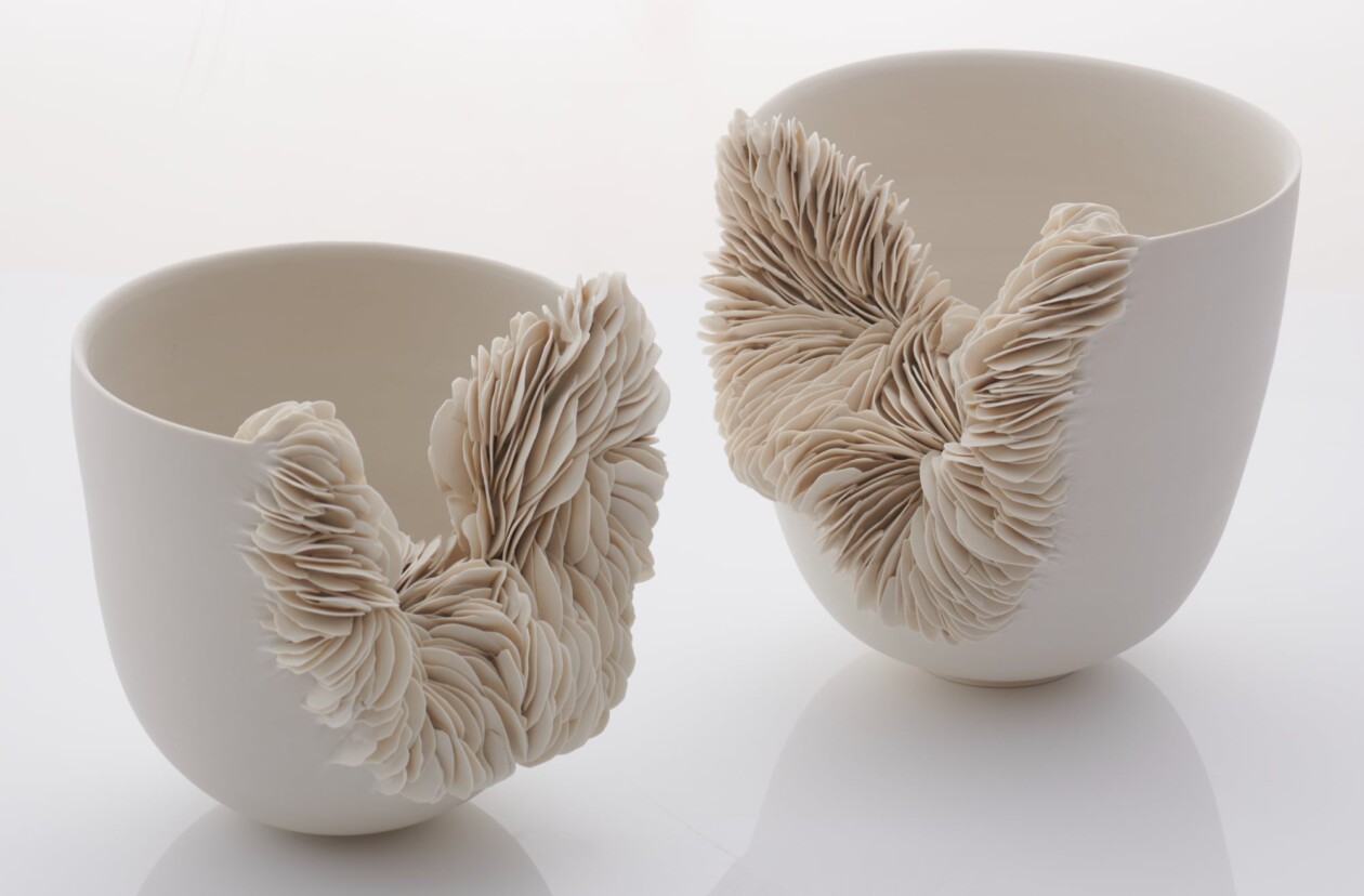 Olivia Walker, a talented ceramic artist based in Devon, England, creates captivating porcelain vessels and wall pieces that evoke the beauty and complexity of the natural world. Her signature technique involves throwing porcelain bowls on a wheel and then meticulously layering countless, wafer-thin porcelain fragments onto their surfaces. Walker meticulously sculpts these layers into organic shapes, reminiscent of fungi, coral reefs, and other natural formations. The resulting sculptures possess a mesmerizing textural quality, their surfaces teeming with intricate details that invite closer inspection.
