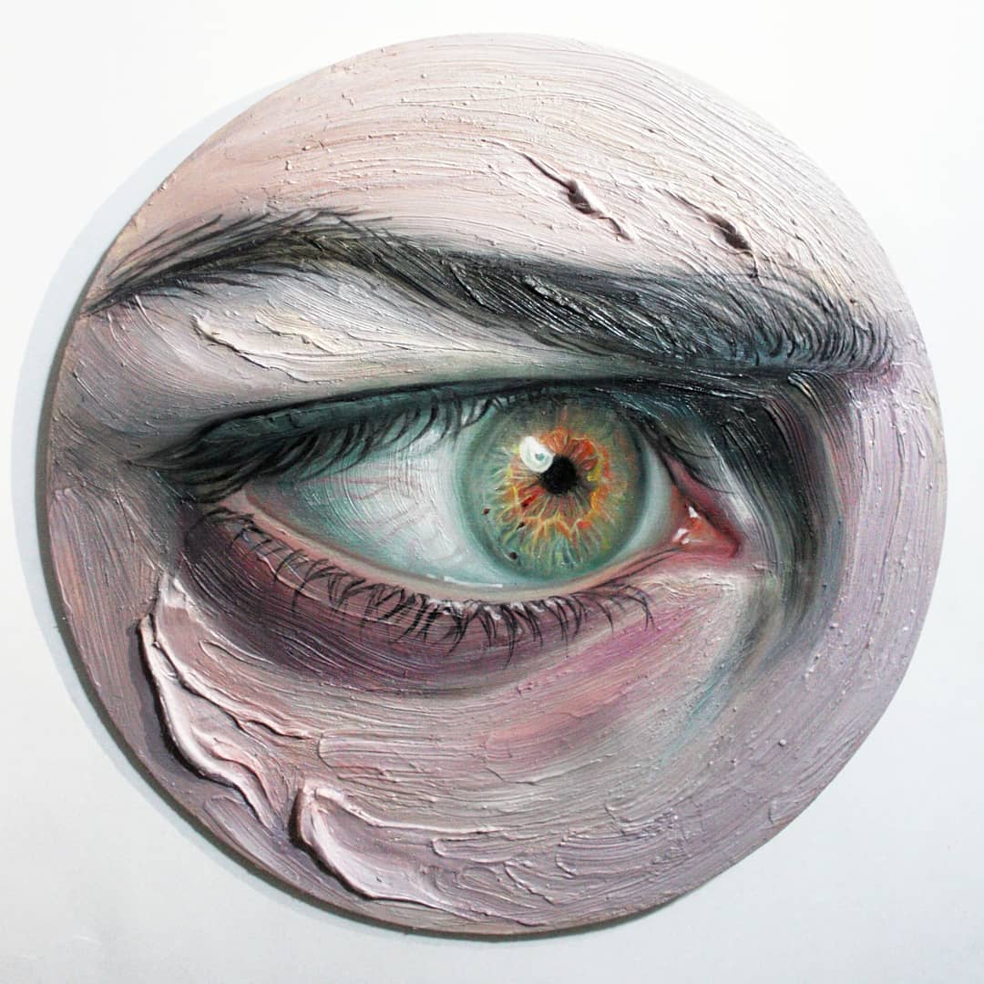 I felt inspired by painting the eyes as I’m a firm believer that the eyes are the only part of one’s being that can truly depict a person’s vulnerability. (…) I felt inspired to paint just the eye because an expression can be interpreted [in] a thousand different ways. (…) While I do give them names such as lust & desire, there are people that see it as something more, as a completely different emotion. It excites me to paint them, as I try to make them as raw as possible, to give it depth and life as I won’t be creating the same eye twice.