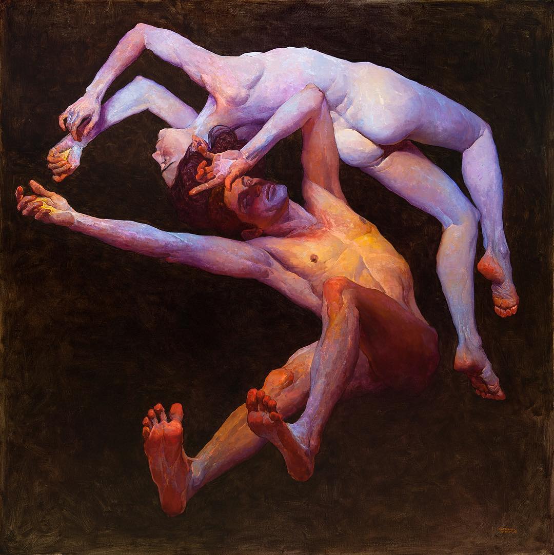 Denis Sarazhin’s paintings are more than just visually stunning; they are portals into a world of human experience. By stripping away the details of facial expressions, Sarazhin compels us to focus on the raw emotions and unspoken narratives conveyed through body language. His work is a testament to the power of the human form as a universal language, one that transcends cultures and speaks to the shared experiences of humanity.