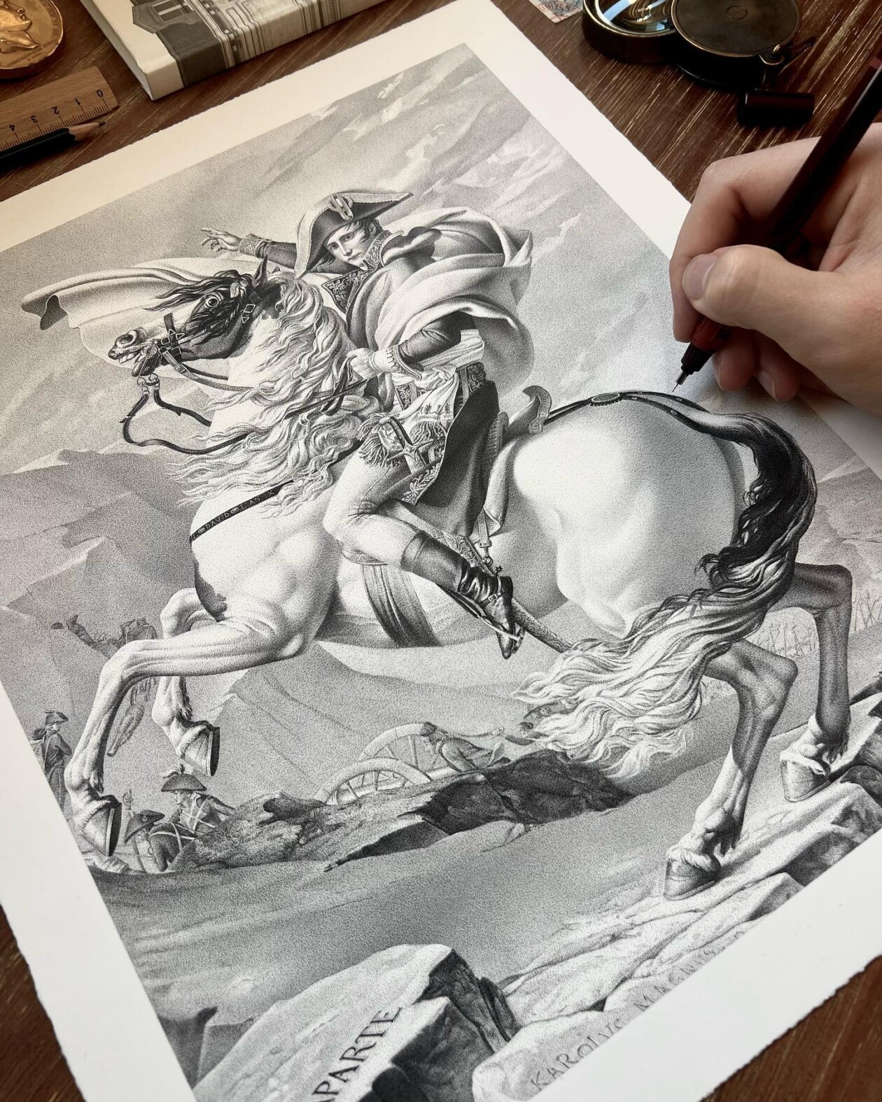 Xavier Casalta’s stipple illustrations are a testament to the incredible patience and precision required in the art of stippling. His largest piece, featuring a marble bust of Marcus Aurelius surrounded by blooms, is a staggering display of dedication, taking over 2,300 hours across 15 months to complete. This masterpiece is composed of approximately 48 million ink dots, each one meticulously placed to create depth and texture.