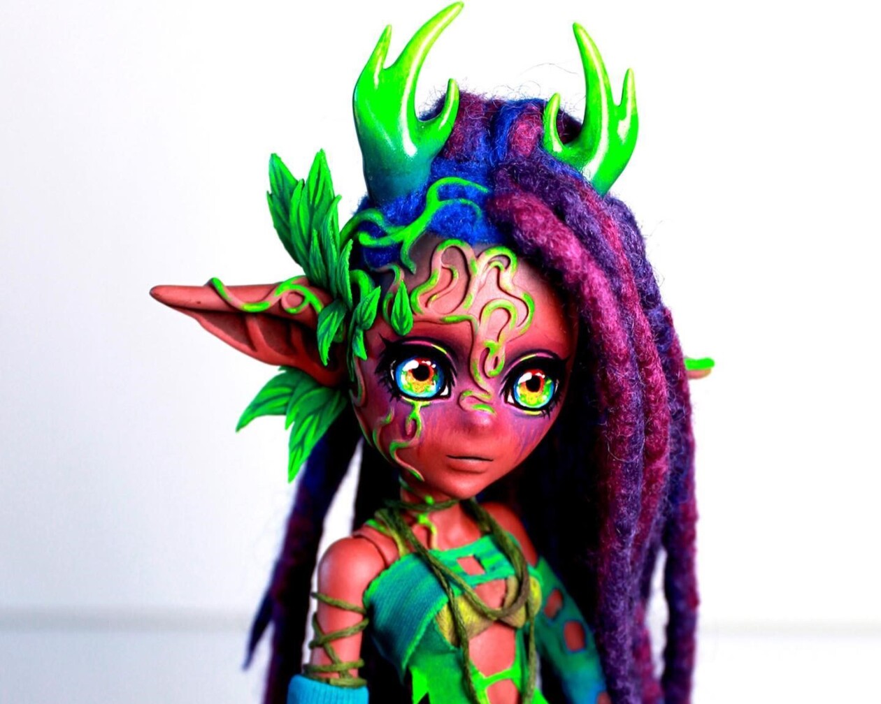 Inspired by her fascination with fantasy and horror, Rose utilizes a unique process to transform ordinary dolls into extraordinary beings. With a keen eye for detail and a vibrant imagination, she reimagines their features, bestowing upon them captivating eyes, fantastical costumes, and hair in a spectrum of colors. The result is a mesmerizing collection of creatures that are both beautiful and unsettling, existing in a delightful paradox between light and shadow. Whether it’s a hauntingly beautiful devil doll or a cute creature with a mischievous grin, Rose’s creations possess a captivating energy that draws viewers in and compels them to create their own stories.