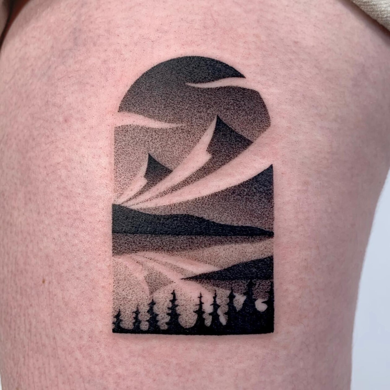 Velco, an artist based in Montreal, has garnered attention for his unique black and white tattoos that are meticulously composed of thousands of tiny dots. This dotwork technique creates a grainy, textured effect that is reminiscent of vintage photographs captured with a film camera. Velco’s designs often feature animals, architecture, and landscapes, all enclosed within distinctive arch-shaped frames.