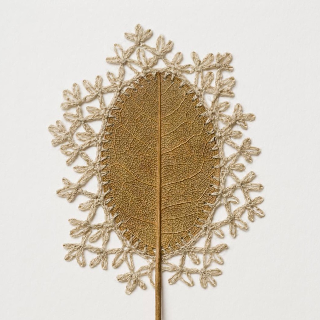 In a harmonious blend of art and nature, Susanna Bauer crafts exquisite sculptures that are as intricate as they are ephemeral. Each piece begins with something as simple as a fallen, dried leaf, serving as both canvas and co-creator. Bauer’s astute eyes catch these delicate remnants of nature, their fragile forms whispering tales of time and transformation. With a deft hand and considerable patience, she embellishes these leaves with meticulously crocheted lace patterns, turning them into ethereal artistic expressions. The juxtaposition of her intricate lacework against the leaf’s natural fragility invites an exploration of the tender relationship between nature’s transient beauty and human creativity. This interplay offers a fresh perspective on embracing the imperfections and transience of our environment and our connections with it.