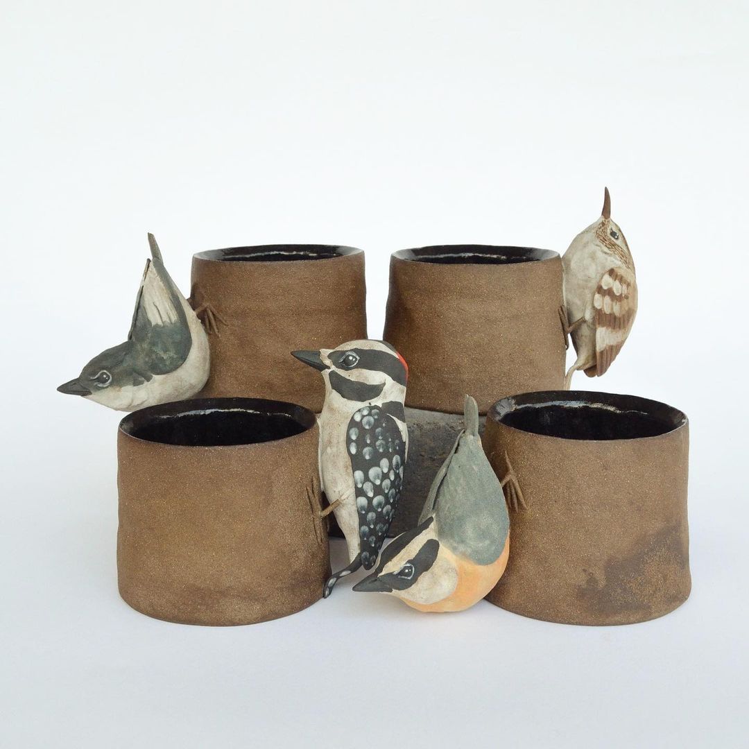 Nature’s echo: ceramic vases ornate with realistic bird sculptures by Sarah Conti