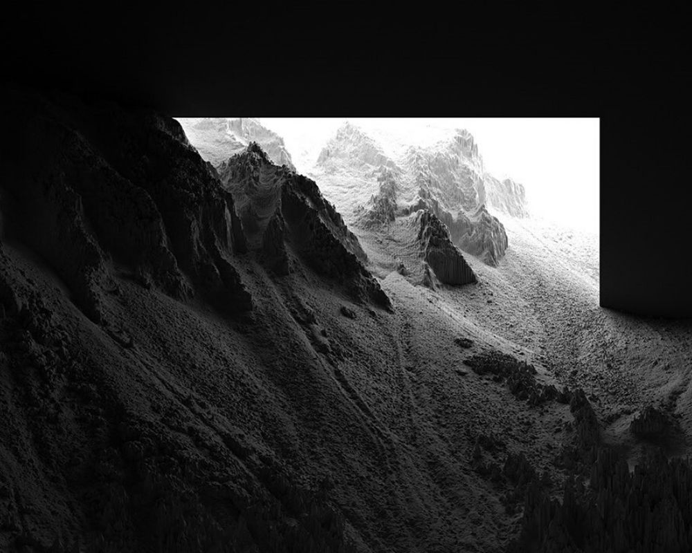 In the enchanting series CHIAROSCURO I, Thomas Paturet crafts a bewitching blend of light and shadow that captivates and puzzles the senses. As an architect and cartographer, Paturet has a profound understanding of space, depth, and structural aesthetics. Through his photographic prowess, he breathes life into the striking landscapes of high mountain ranges, transforming them into surreal realms of contrast and intrigue. These mesmerizing images give the illusion of piercing through the darkness with giant square portals, invoking a sensation akin to standing within the vast hollow of a dimly lit chamber, where the only illumination springs from the towering apertures. This clever manipulation of imagery not only highlights Paturet’s artistic dexterity but also pays homage to the classical technique of chiaroscuro, a nod to its historical roots in the dramatic works of Renaissance masters.