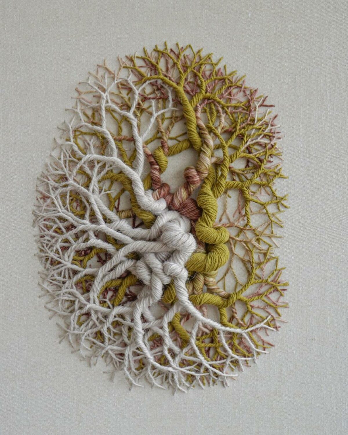 Have you ever gotten lost in the intricate network of roots beneath a sprawling tree? Artist Janaina Mello Landini translates that captivating chaos into stunning works of art. Landini, based in São Paulo, Brazil, creates fiber sculptures and installations titled “Ciclotramas”, which means “cyclical plots” in Portuguese. These mesmerizing pieces capture the essence of nature’s hidden systems, weaving colorful threads into hypnotic representations of tree roots, blood vessels, and even complex computer networks.