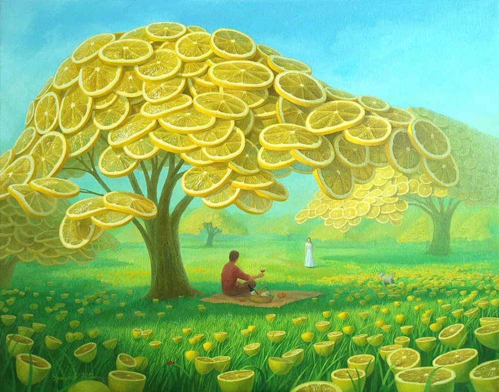 Vitaliy Urzhumov’s lemon-themed paintings are a fascinating blend of surrealism and homage to the citrus fruit. His works are known for their vivid imagery and the way they transform the ordinary lemon into a subject of deep artistic exploration. Urzhumov’s approach is both naturalistic and imaginative, allowing him to delve into the nature of objects and their interactions through light and shadow.