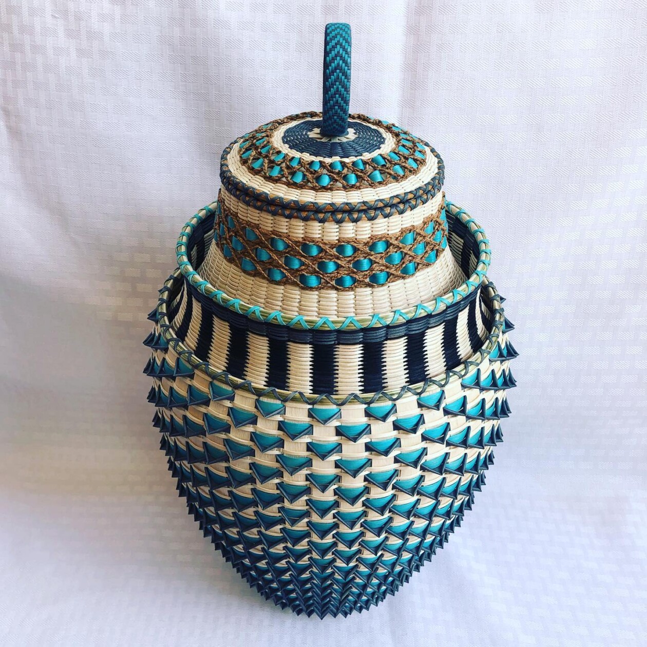 Frey’s approach to basket weaving is deeply rooted in respect for the natural world. He sources his sweetgrass locally, a practice that connects him to the land and its resources. The weaving techniques themselves, like twining and plaiting, are as much about utility as they are about aesthetics. These baskets were traditionally used for gathering, storage, and cooking, but in Frey’s hands, they transcend their practical purpose to become works of art.