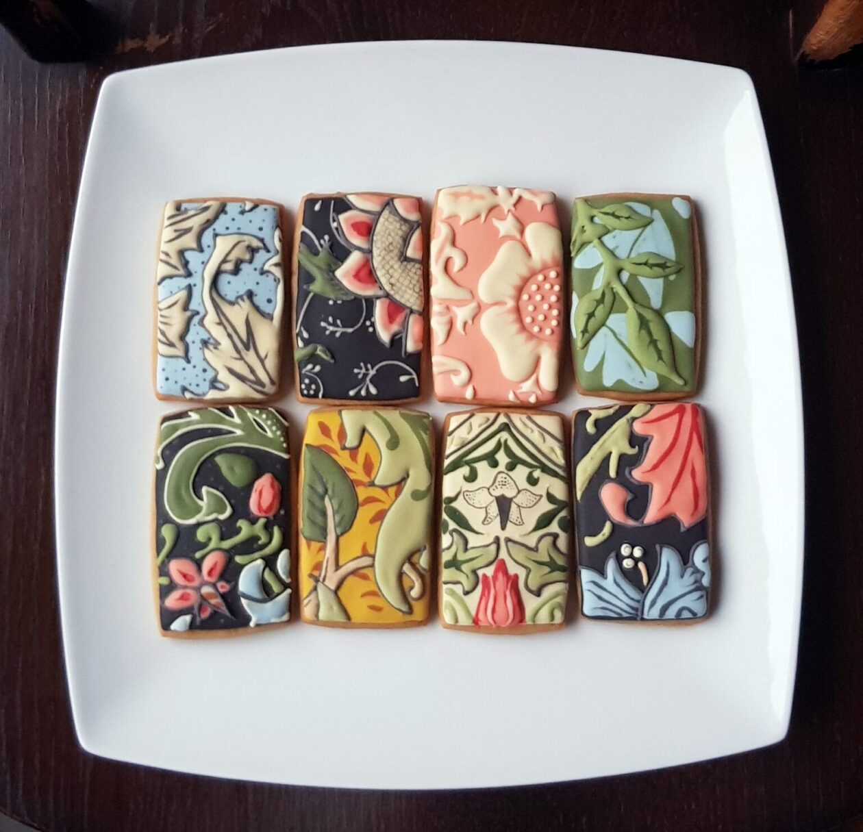 Hawkins meticulously crafts cookies adorned with royal icing, turning each one into a miniature canvas. Her decoration process is informed by her academic rigor, employing fine paintbrushes and a small projector to accurately trace intricate designs. These designs range from the elaborate floral patterns of William Morris to the charming coastal scenes found on English delftware. The creation of a single decorated cookie can require several hours of focused work, with complex elements such as tiny calligraphy and portraits demanding the most time and precision.