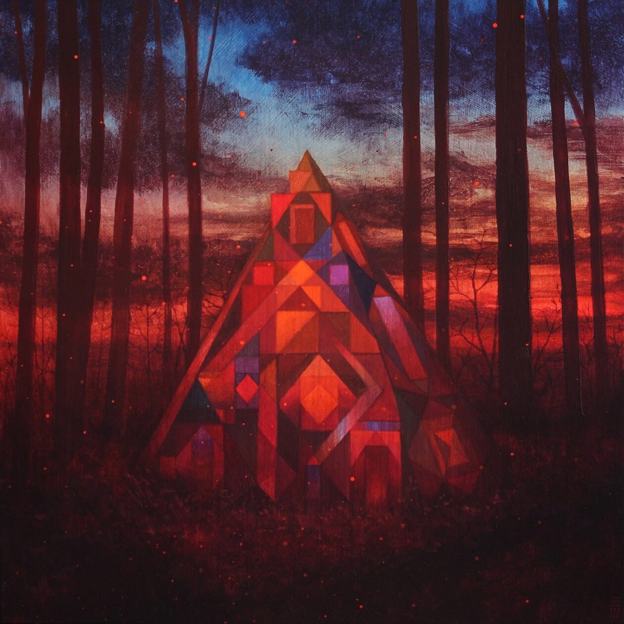 Sleep Walk presents nocturnal forest vistas illuminated by radiant geometric shapes, structures reminiscent of altars, and shimmering prismatic refractions. The titles of his pieces, such as “Desire Path Finder”, “Liminal Bridge”, and “Kismet Gateway”, underscore the central themes of connections, openings, transformations, and the enigmatic spaces that lie between distinct states. McMullen’s canvases become visual narratives of transition and discovery. The exhibition runs May 3 to 24 in Los Angeles.