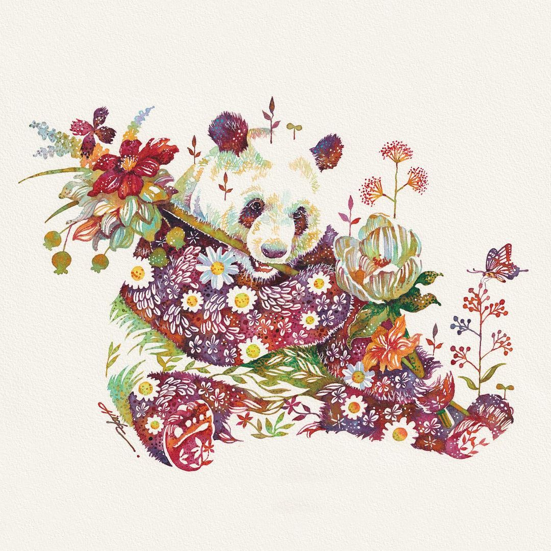 Japanese artist Hiroki Takeda combines watercolor painting with floral motifs to create enchanting animal illustrations. Inspired by his mother’s love for plants and his background in caricature, Takeda’s unique style blends the natural beauty of flora with the charm of fauna. His watercolor works feature animals with fur or scales resembling plants, flowers, and leaves, often with whimsical touches like wandering butterflies. Each piece is meticulously crafted with vibrant colors and delicate details, showcasing Takeda’s mastery of watercolor techniques.