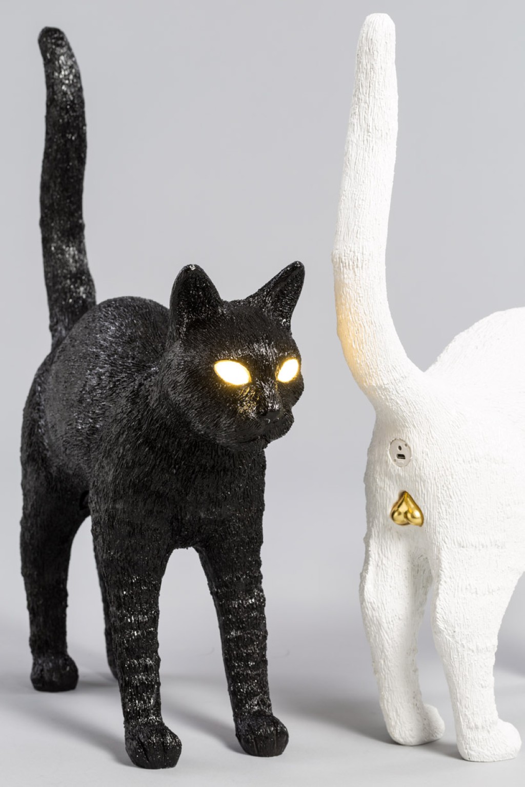 Studio Job has collaborated with the Italian brand Seletti to create FELIX, a wireless lamp shaped like a life-sized cat. Modeled after the feline companion of Job Smeets, the piece serves as a functional sculpture that captures a cat in a curious and alert posture. The design integrates practical features, such as eyes that illuminate with LED light and a USB charging port located discretely beneath the tail. This artistic creation reflects a blend of pop culture aesthetics and functional home decor, transforming a common household pet into a glowing statement piece for contemporary interiors.
