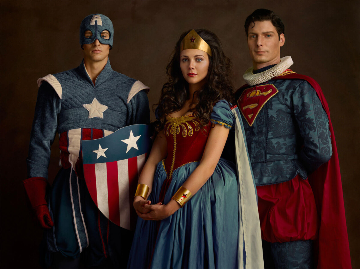 French photographer Sacha Goldberger (previously here), known for blending contemporary and classical elements in his work, has once again captured our imagination with his latest portrait series. In “Flemish Superheroes”, Goldberger reimagines iconic characters from American pop culture as if they posed for commissioned portraits during the 16th-century Flemish Renaissance. Imagine Batman, Superman, Captain America, Wolverine, and Wonder Woman adorned in ruffs and velvet-forward garments, their capes billowing against a backdrop reminiscent of old European paintings. These juxtapositions of modern-day heroes within the context of historical art create a captivating dialogue that transcends time and genre.