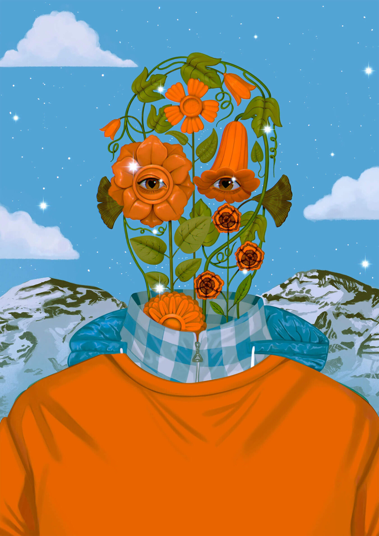German Gonzalez creates vivid portraits that seamlessly blend realistic human features with surreal, dreamlike interventions. His digital illustrations are characterized by a bold use of color and light, often incorporating natural elements like flowers, birds, or abstract textures that emerge directly from the subjects. By distorting or concealing parts of the face with these vibrant additions, Gonzalez explores the internal emotional states and the complex identities of the individuals he portrays, moving beyond traditional representation to find a more poetic visual language.