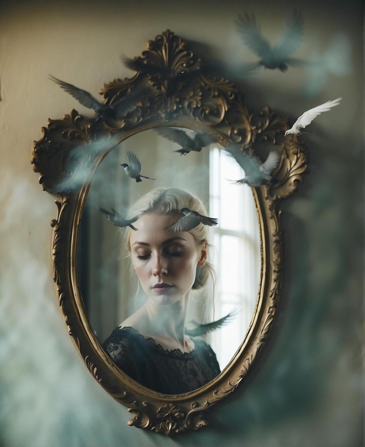 Antonia’s AI-generated portraits seem to capture a delicate balance between reality and fantasy, where the subjects are not just seen but felt. Her work of girls interacting with mirrors and birds suggests a series of images that evoke a sense of introspection and freedom. The use of AI in art is becoming increasingly prevalent, allowing artists like Antonia to push the boundaries of creativity.
