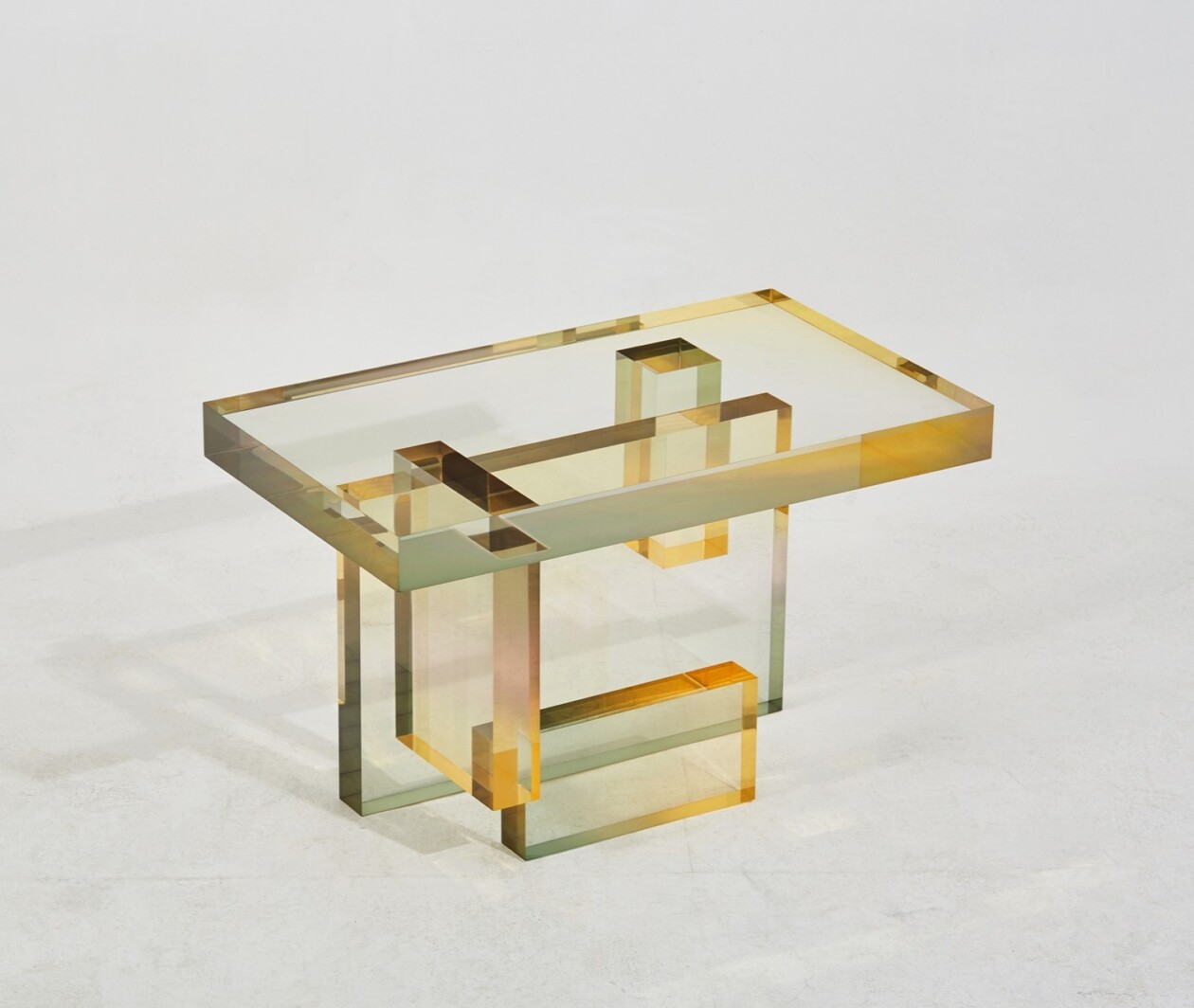 Saerom Yoon, a South Korean artist, has captivated the design world with his sculptural furniture that is not only functional but also a visual delight. His Crystal Series tables are a testament to his innovative approach, where he skillfully blends woodworking knowledge with the versatility of acrylics. By adding dyes directly into the resin, Yoon creates pastel-colored gradients that give the illusion of depth and light within the material, reminiscent of looking into a crystal.