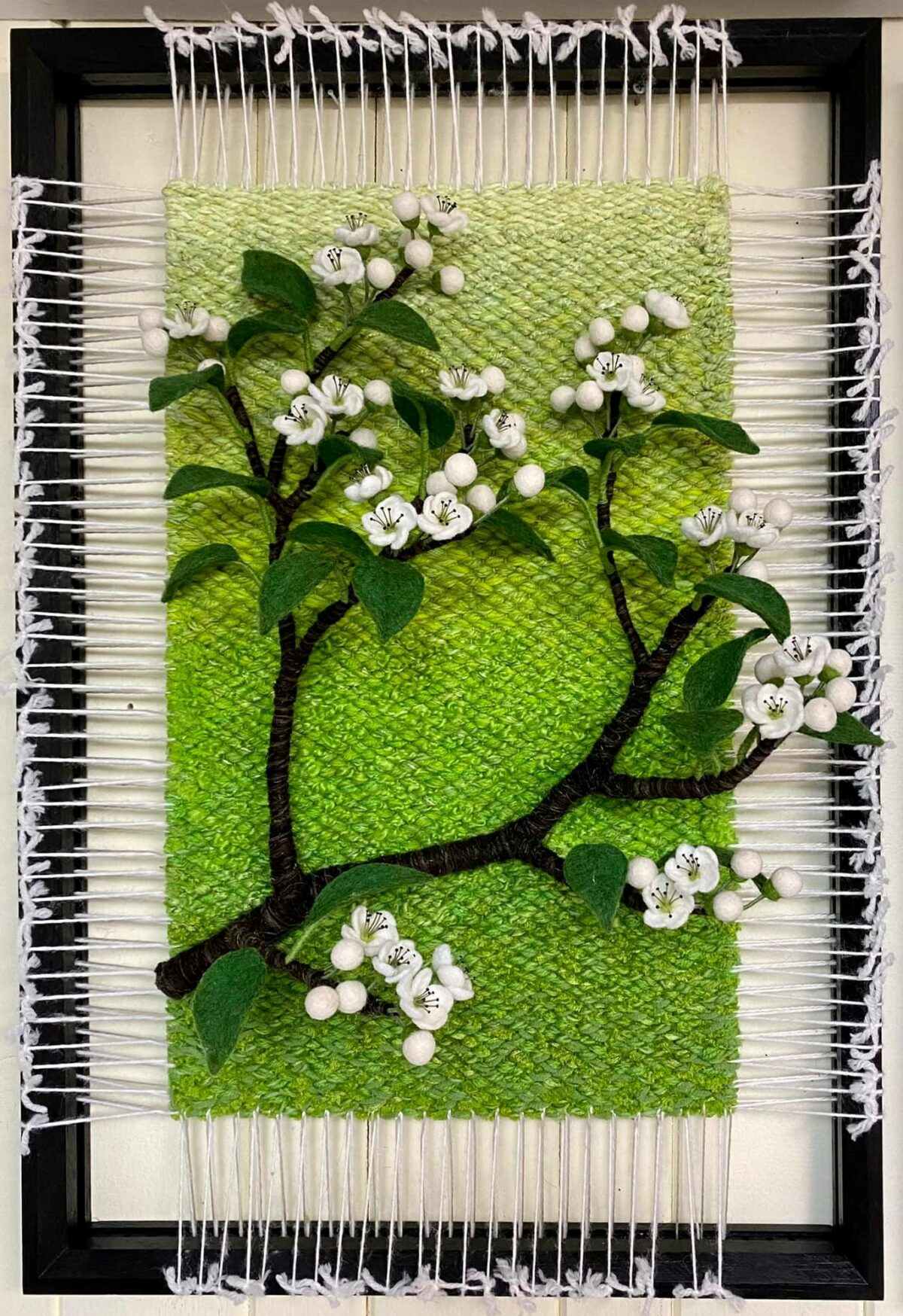 I am a fiber artist. I create 3 dimensional felting-weavings fusions using reclaimed and recycled materials. I love to create tapestries that are stories of the world around me – people I’ve met, places I’ve been and things that make me smile.
