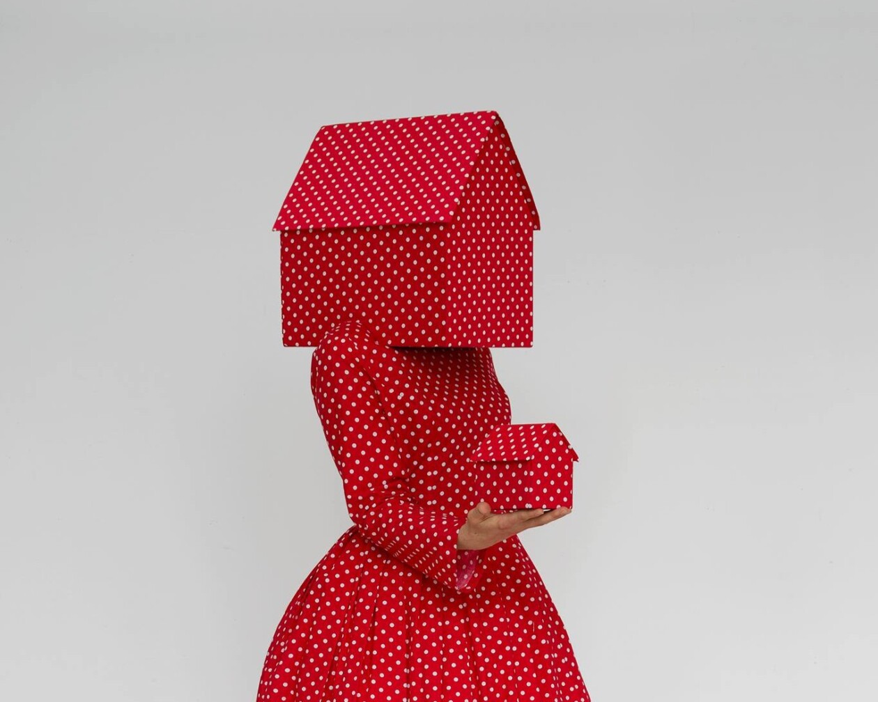 The work of Dutch artist Guda Koster unfolds through a carefully constructed tension between body, textile, and space, where human presence is both central and deliberately obscured. Her practice merges performance, sculpture, and photography, resulting in staged compositions that treat the body as a structural element rather than an expressive subject. Using patterned fabrics and bold color arrangements, she creates what can be described as “living sculptures”, in which garments expand beyond their functional role and become architectural extensions that reshape posture, identity, and spatial relationships. These interventions highlight how clothing operates as a coded system — signaling social roles, behaviors, and expectations — while simultaneously disrupting those very readings through exaggerated forms and unusual configurations.