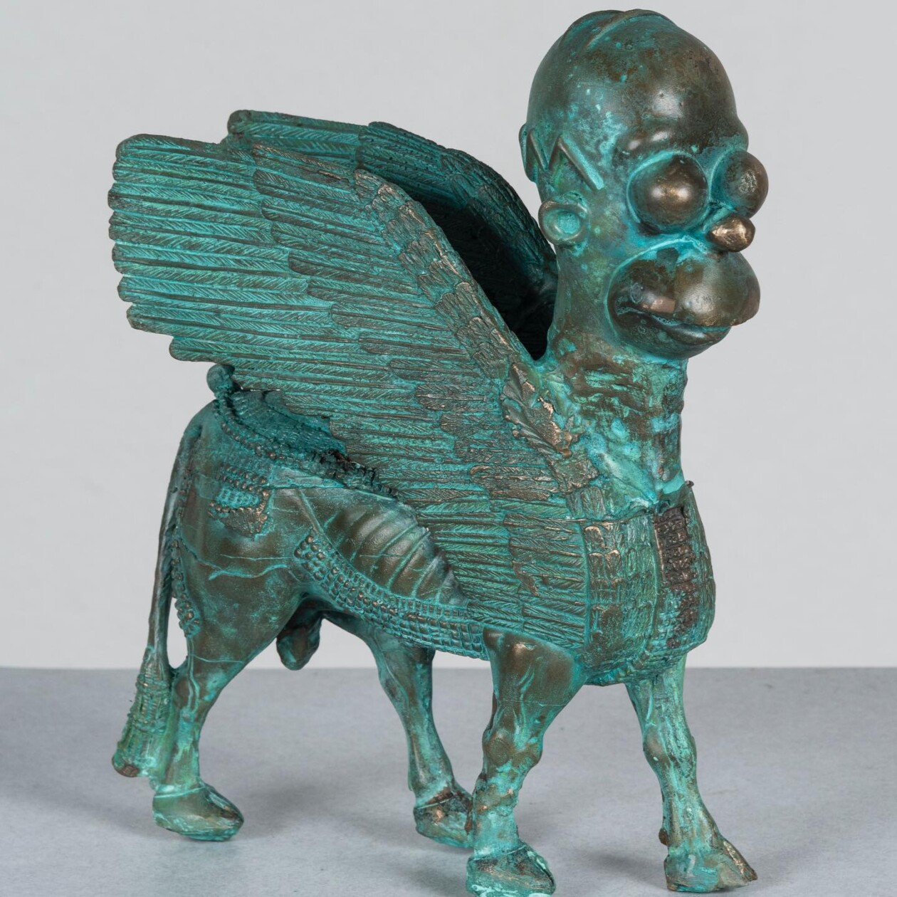 Joshua Goode’s artistry is a fascinating fusion of historical depth and contemporary zest. His sculptures, which blend ancient relics with pop culture icons, create a playful yet profound commentary on the nature of time and memory. By crafting faux archaeological artifacts that seem to belong to a bygone era, Goode invites viewers to question the authenticity and value we assign to ancient objects versus modern creations.