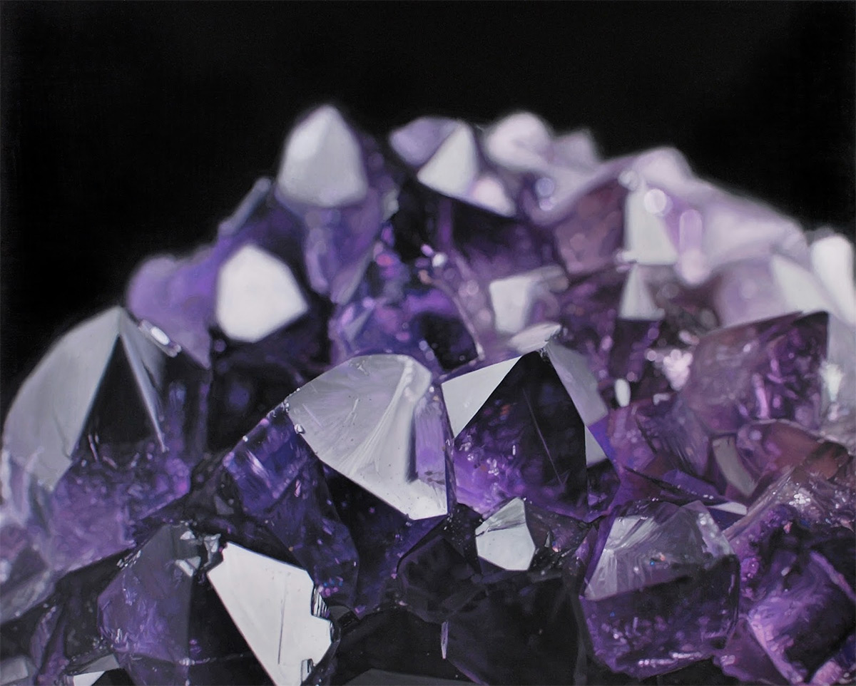 Carly Waito’s exquisite artistry converges at the intersection of geology and creativity. Her hyper-realistic art of crystals and minerals transcends traditional boundaries, transforming the canvas into a window that reveals nature’s minute marvels. Waito meticulously captures the delicate interplay of geometry and light, seemingly translating the static beauty of minerals into dynamic, lifelike compositions. Each painting is a meticulous celebration of nature’s complexity, enticing the onlooker to pause and explore the intricate details that might otherwise go unnoticed in the mundane rush of everyday life. Through her artistry, these otherwise ordinary natural specimens are transformed into extraordinary visions that resonate with a sense of infinite wonder and curiosity.