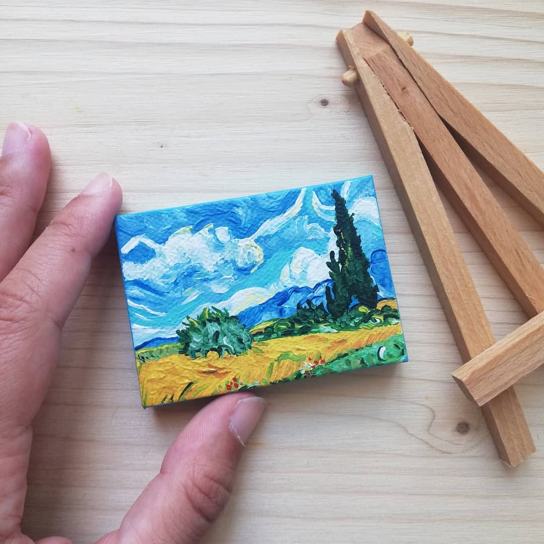 Italian artist Ilaria Lafronza embarks on a captivating journey, transforming massive masterpieces into petite marvels. Her artistic endeavor breathes new life into iconic paintings by meticulously shrinking them down to canvases as small as 2×2.8 inches. This minute scale defies the constraints of traditional art, capturing the grandeur of history in the palm of a hand. Lafronza believes in the charm of accessibility, highlighting how these miniature pieces, despite their diminutive stature, evoke emotions comparable to their larger counterparts. Her journey, initiated in 2016, reflects an ambition to craft art that is both personal and portable, touching hearts worldwide with its captivating simplicity and intimacy.