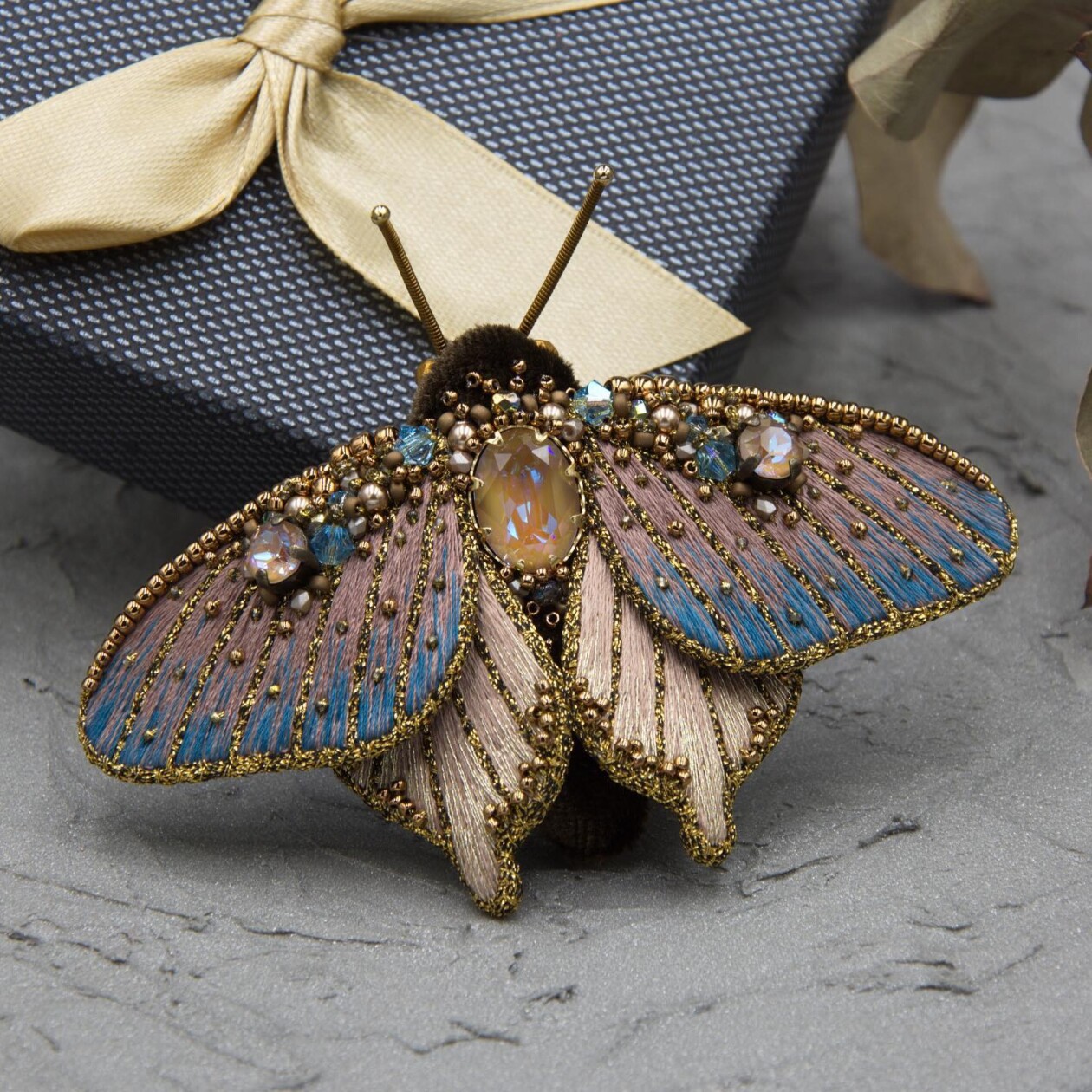 The beauty of Victoria’s work lies in her ability to transform the often-overlooked world of insects into stunning wearable art. Each brooch is a testament to her skill and creativity, showcasing the intricate details of these tiny creatures through beaded embroidery. The use of bright beads and gemstones adds a touch of elegance and sophistication, making each piece a unique statement accessory that stands out in any collection.