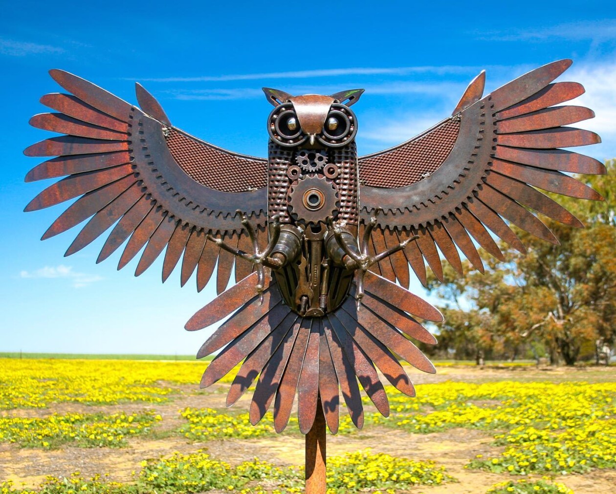 He is inspired by the diverse wildlife and history of his country and pays tribute to them by using metal that is over 100 years old. His sculptures have a rustic and steampunk aesthetic and show his remarkable skill and creativity. Sprigg’s sculptures are a stunning example of how art can transform discarded materials into something beautiful and meaningful.