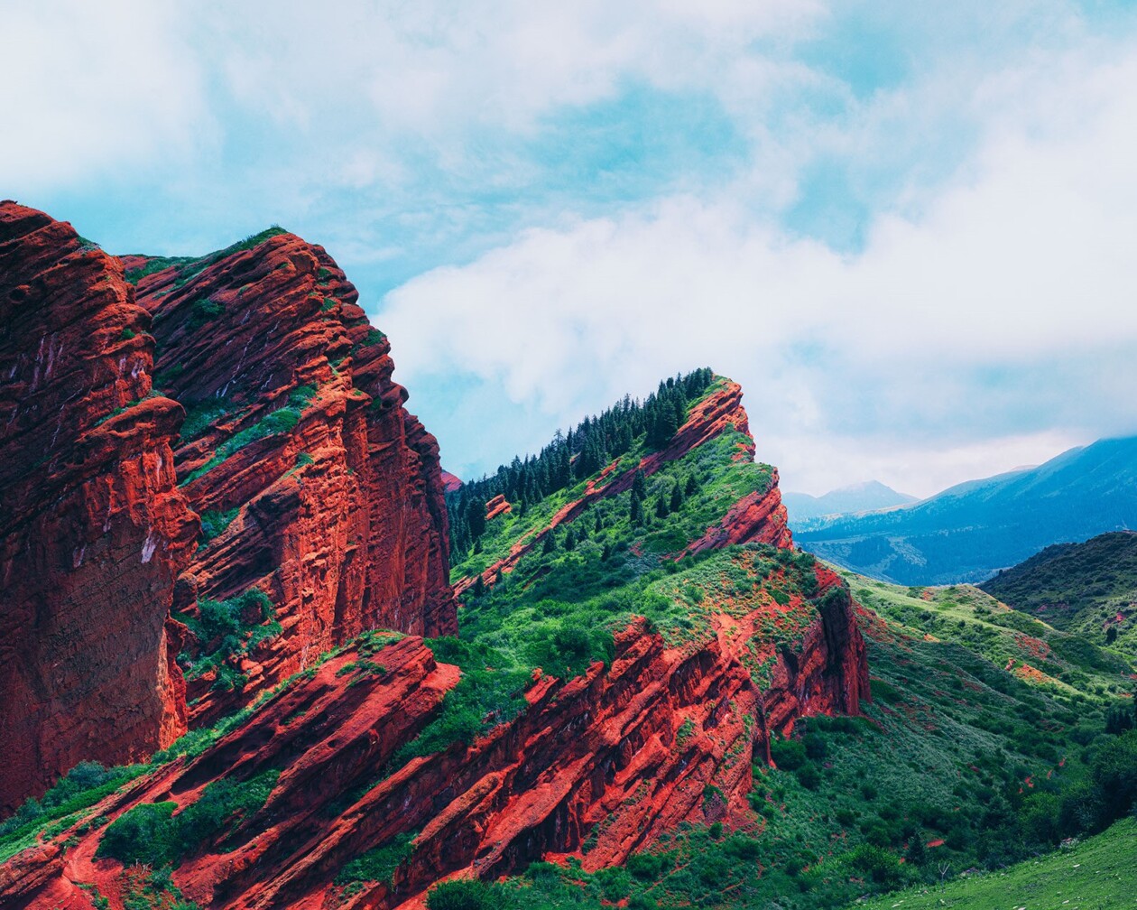 His series invites viewers to immerse themselves in the natural splendor of places like the Jeti-Oguz Canyon, also known as the Seven Bulls Rocks, where the striking red sandstone formations rise majestically against the sky. This collection is not just a feast for the eyes but also a testament to the artist’s passion for exploring and capturing the essence of some of the world’s most stunning and remote locations.