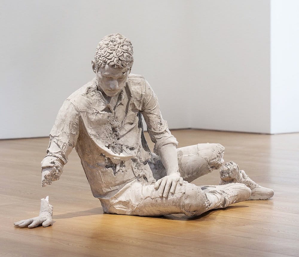 Daniel Arsham is a contemporary artist who explores the themes of time, decay, and transformation in his sculptures. He uses materials such as hydrostone, pyrite, selenite, and obsidian to create realistic human figures and objects that appear to be eroded, fragmented, or fossilized. His sculptures often isolate human gestures, such as hands clasped in prayer, holding a basketball, or embracing each other, to evoke a sense of emotion, memory, and loss. Arsham’s work challenges the perception of reality and history, and invites the viewer to imagine the future of humanity and civilization.