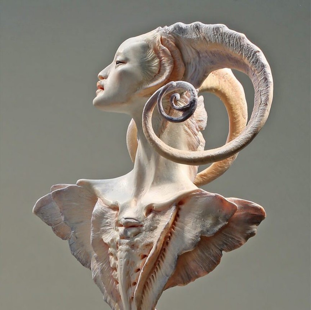 Forest Rogers’ sculptures are a captivating blend of the magical, surreal, and allegorical. Her works, deeply rooted in mythological themes, bring to life fantastical beings that seem to transcend the boundaries of imagination and reality. With a background in stage and costume design, Rogers has a unique ability to infuse her sculptures with a sense of narrative and movement, as if they are characters caught in a moment of a larger, untold story.