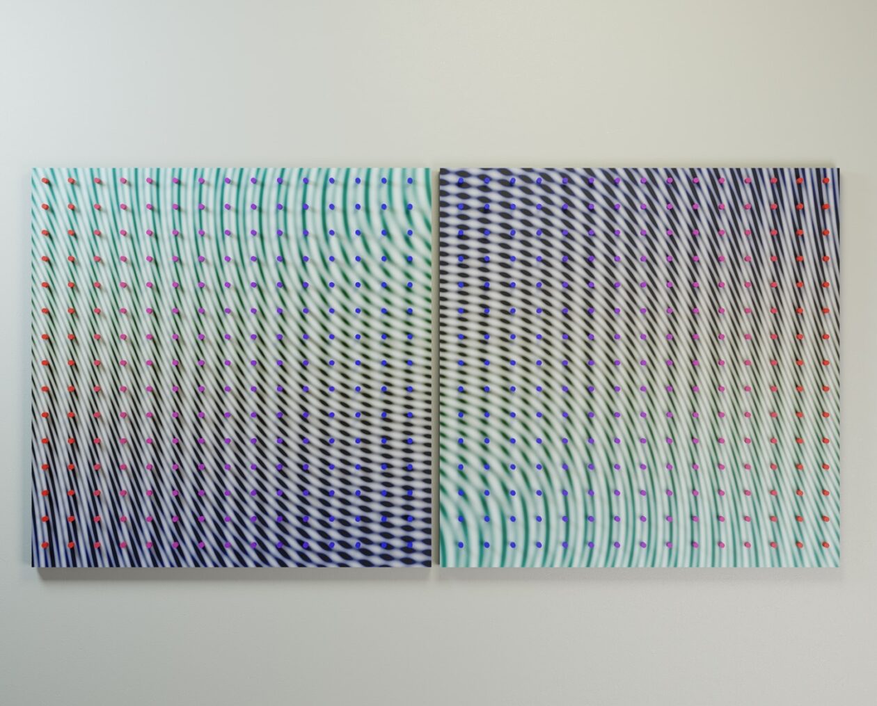 Where the Impressionists captured fleeting light with broken color, Symotiuk captures movement through repetition and spatial logic. His pieces often feel like frozen moments of vibration, visual echoes that suggest rhythm and transformation without literal motion. The influence of Pointillism is particularly evident in how he deploys small, discrete visual units to form a larger cohesive field. This method draws the observer into a layered perceptual experience — where macro and micro coexist, and every step backward or forward reveals something new.