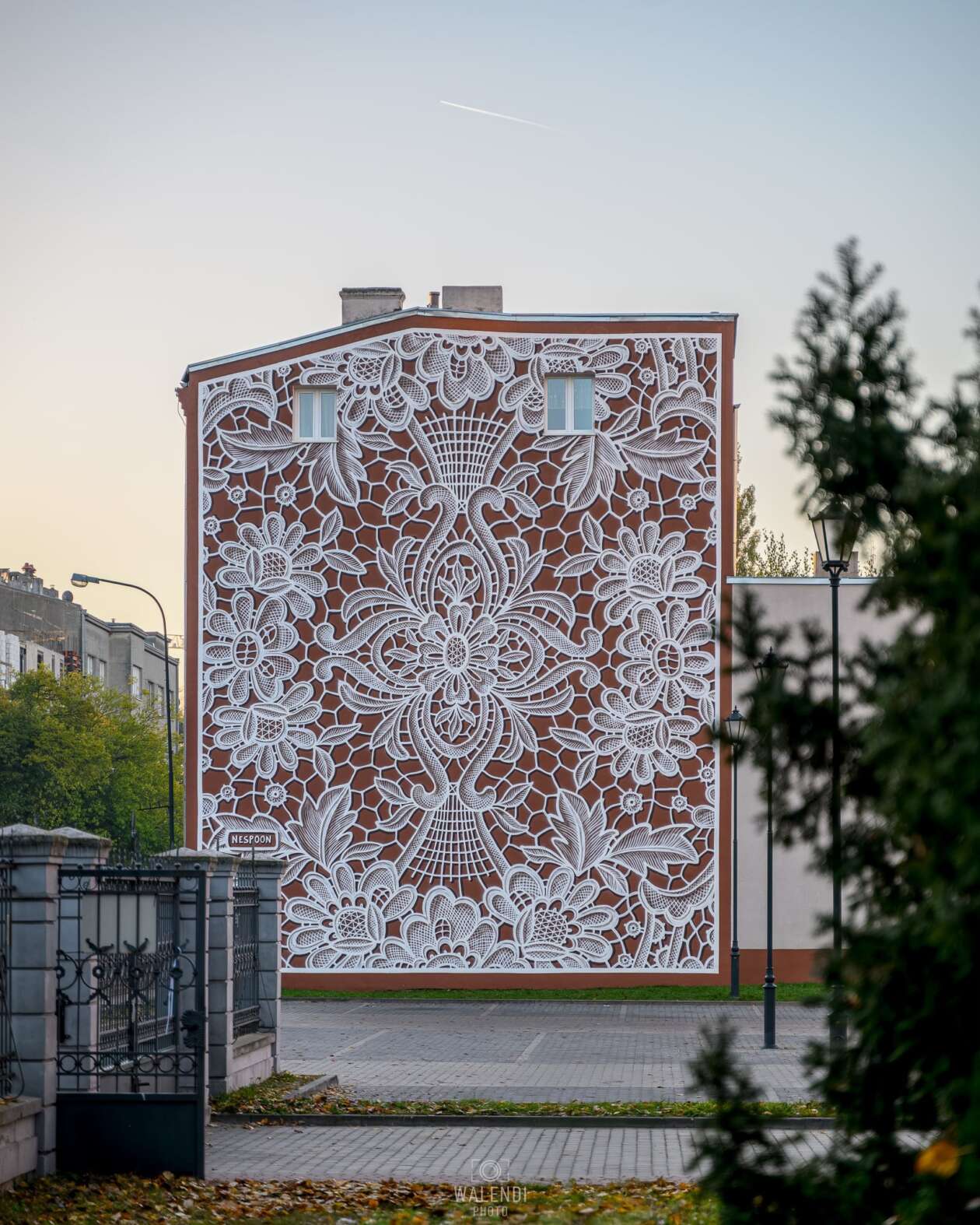 NeSpoon, a contemporary Polish artist, has mastered the delicate balance between tradition and modernity through her lacework murals. Her creations, inspired by traditional lace patterns, transform urban spaces into intricate tapestries of beauty. Each mural is a tribute to the meticulous craftsmanship of lace-making, a heritage craft that has been passed down through generations in many cultures. By magnifying these patterns onto walls, NeSpoon not only honors this delicate art form but also redefines its relevance in the modern world, turning once-ordinary walls into breathtaking visual poems.
