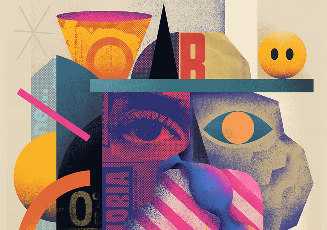 Sébastien Féraut, known professionally as Niark1, continues to carve out a space entirely his own within the contemporary art landscape. A French multidisciplinary artist, he merges digital collage, painting, and illustration with a style that bends expectations. His work pulses with frenetic energy, layering angular forms and primal textures in compositions that draw from Picasso’s cubism, Basquiat’s raw neo-expressionism, and African and Outsider Art influences. Through this synthesis, Niark1 constructs surreal realms where monstrous figures and mythical creatures roam — icons that have haunted his imagination since childhood.