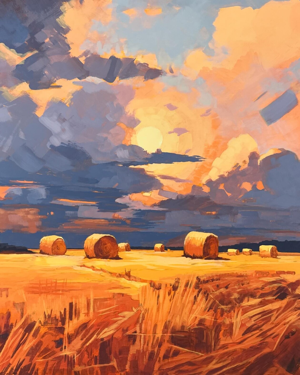 James Musil, a Minnesota-based artist, has a unique ability to capture the ever-changing moods of the sky with his bold acrylic paintings. His work is characterized by a dynamic use of color and texture, creating immersive skies that convey a variety of emotions. Musil’s technique involves reducing information to the essentials, allowing sweeping brushstrokes and planes of color to express the essence of each landscape.