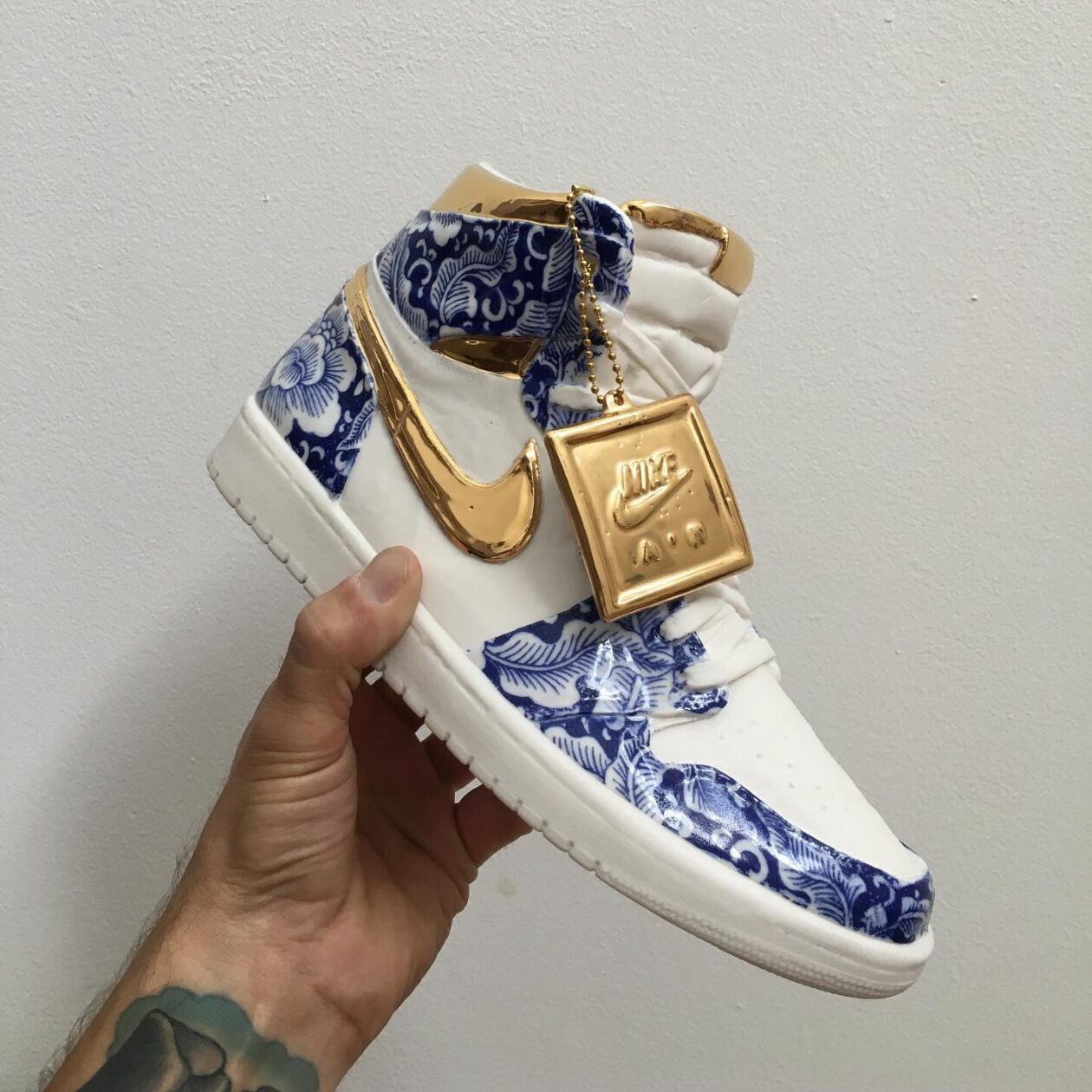 Brock DeBoer, a sculptor based in Los Angeles, transforms commonplace items and cultural icons into porcelain artworks, recasting them as cherished keepsakes. His creations range from Air Jordan sneakers to basketballs, each familiar contemporary shape meticulously crafted from delicate china. Adorned with classic cobalt designs and gold accents, these pieces artfully merge historical aesthetics with present-day forms.