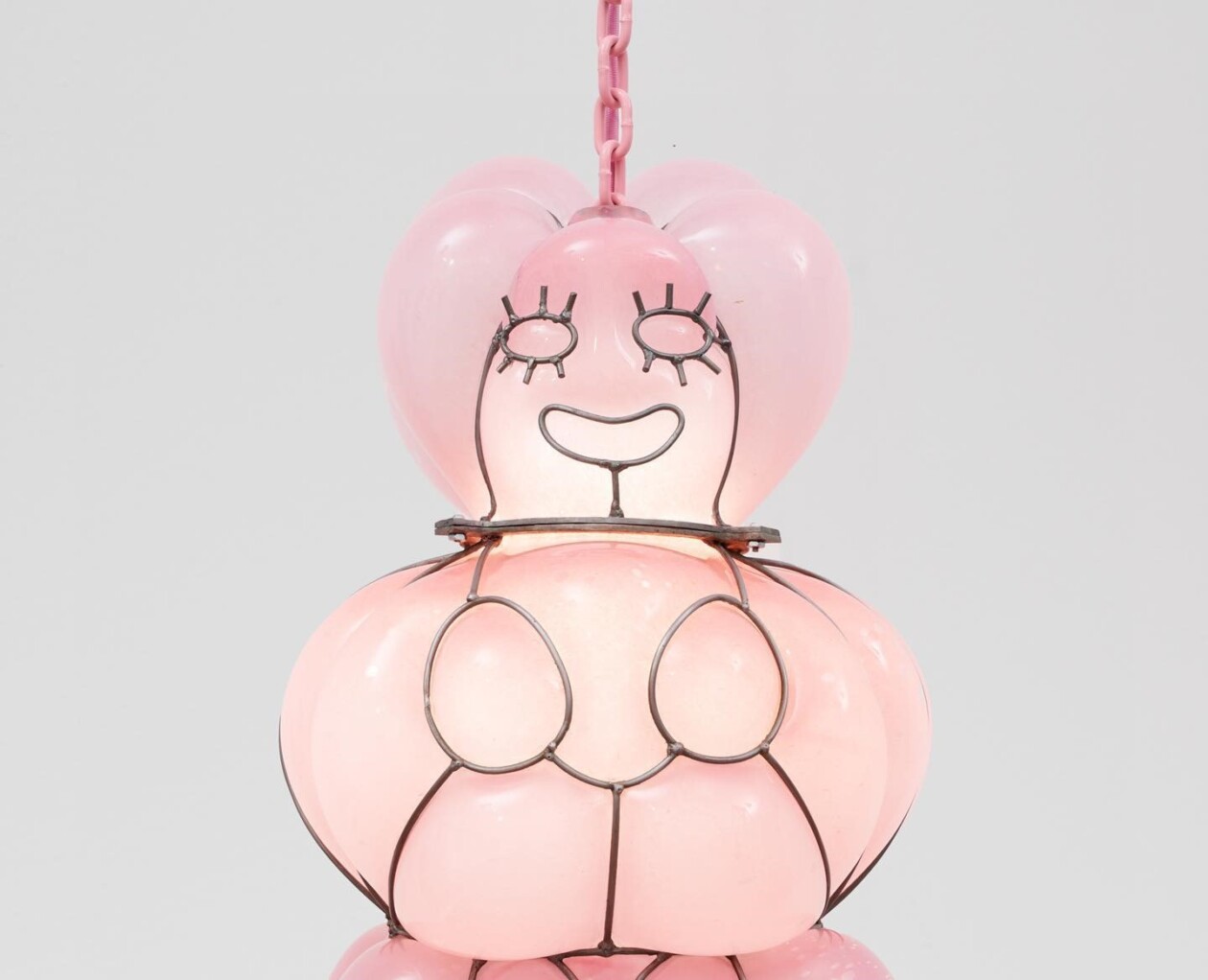 Katie Stout’s sculptural glass pendants are a fascinating fusion of art and fantasy, bringing to life otherworldly blob creatures that captivate and intrigue. Her work is a testament to the versatility of glass as a medium, allowing for the creation of fluid, organic forms that seem to defy gravity and expectation.