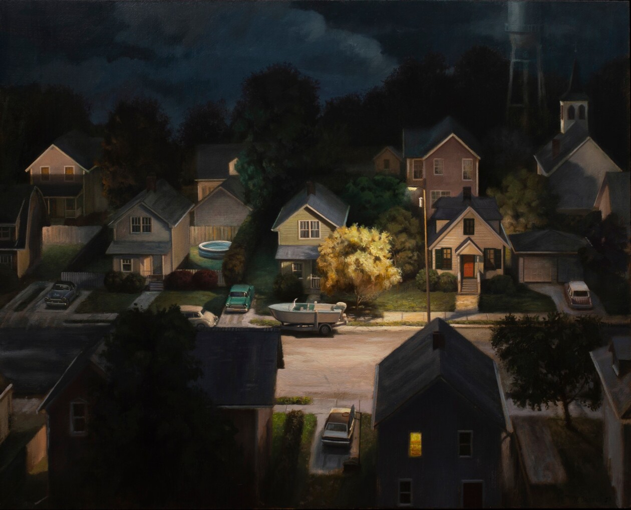If you are looking for a unique and captivating way to explore the American suburbs, you might want to check out the oil paintings of Alberto Ortega. Ortega is a Spanish-born artist who now lives and works in Raleigh, North Carolina. He creates realistic and detailed paintings of suburban landscapes at night, using miniature sets that he builds himself as references. His paintings have a strong cinematic feel, as he controls the angle, point of view, and lighting of each scene, much like a film director would do.