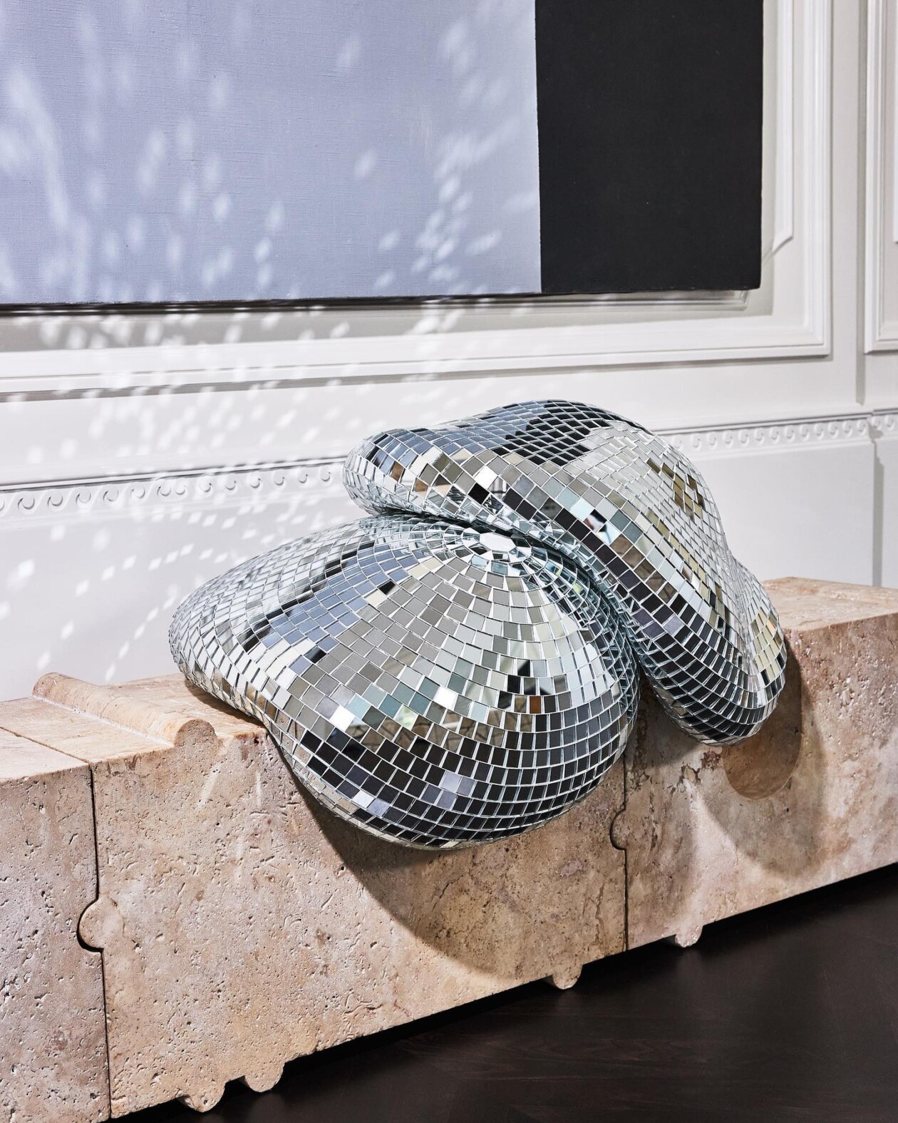 Rotganzen Studio, a Dutch creative collective, has captured the essence of fleeting moments of glory and the chaos of club nights through their surreal sculptures of melted mirror disco balls. These sculptures, part of the Quelle Fête series, evoke a range of emotions, from the euphoria of dance floor encounters to the melancholic aftermath of a party. Each piece is meticulously handcrafted from foam and covered with mirrored tiles, except for the felted underside to prevent damage to surfaces.