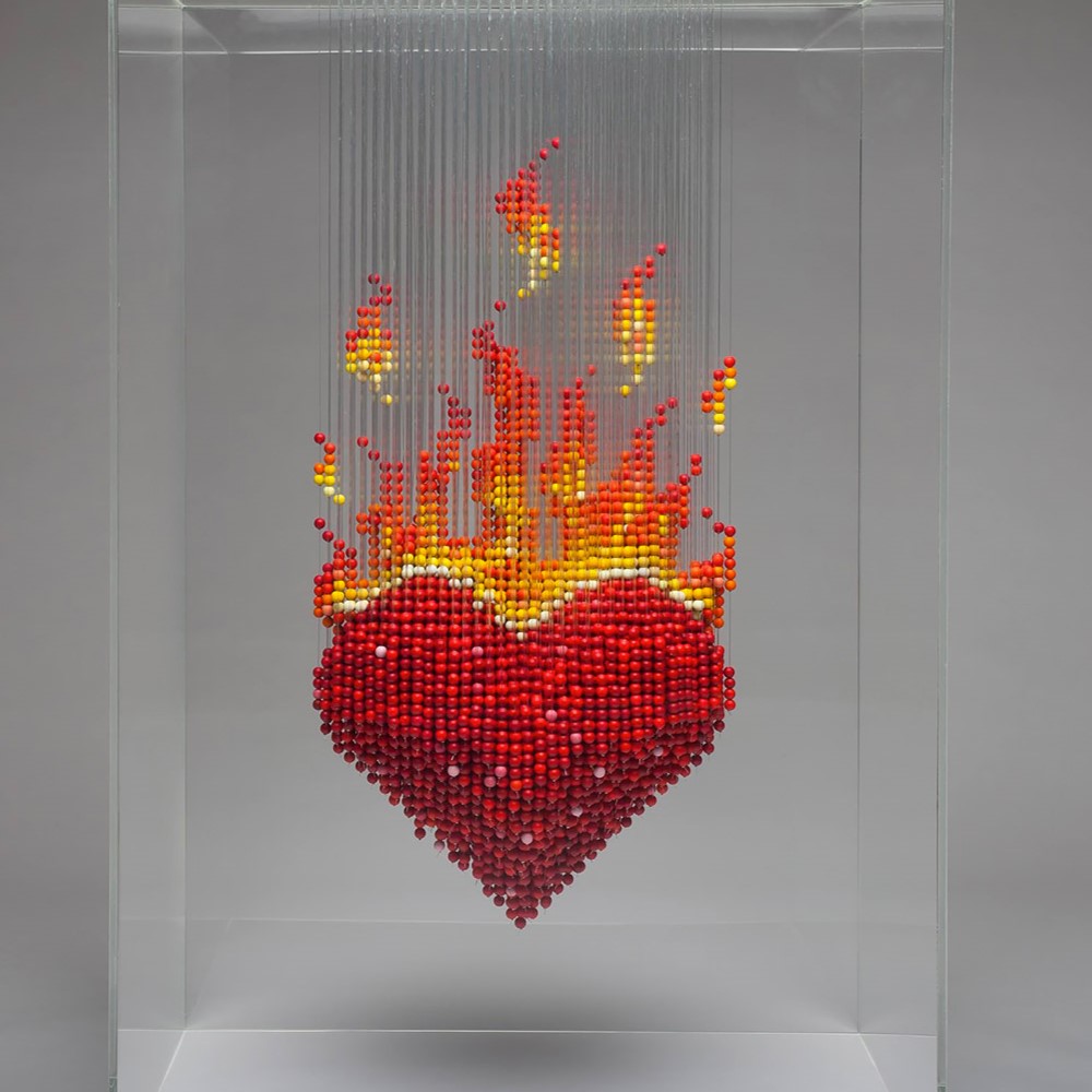 Her recent works involve beads used as three-dimensional pixels to create hanging sculptures, emphasizing precision, simplicity, and clarity without superfluous details. These principles make her art both accessible and aesthetically pleasing. Van der Meer’s creations have been exhibited at notable venues, including the Gemeentemuseum Den Haag and the Singer Museum, and are part of prestigious collections like the Heineken Collection Foundation and Collection De Heus.